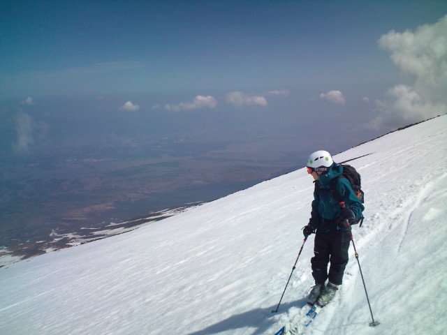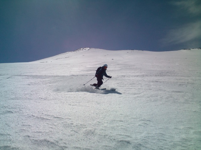 乗鞍岳は複数の峰を持つ山です。5月中は3千メートルを越える剣が峰をはじめ、富士見岳、摩利支天岳、大日岳、高天ヶ原など、それぞれの峰から続く斜面を選んで滑ることができます。